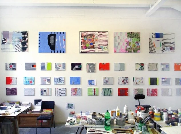 I was also fascinated by how Dellow organised his studio in a way that offered him a challenging and imaginative environment within which to stimulate the discovery of new possibilities and to guard against the possibility of falling into a simple formula. At times when entering his studio you would be confronted by a wall covered in small panel paintings organised in a grid system . He would paint and place these panels on the studio wall, occasionally moving them around to examine relationships between the works. Placed together they act as a catalyst for the cross-fertilisation of ideas between paintings, individually the panels allow great contrasts of scale and touch.